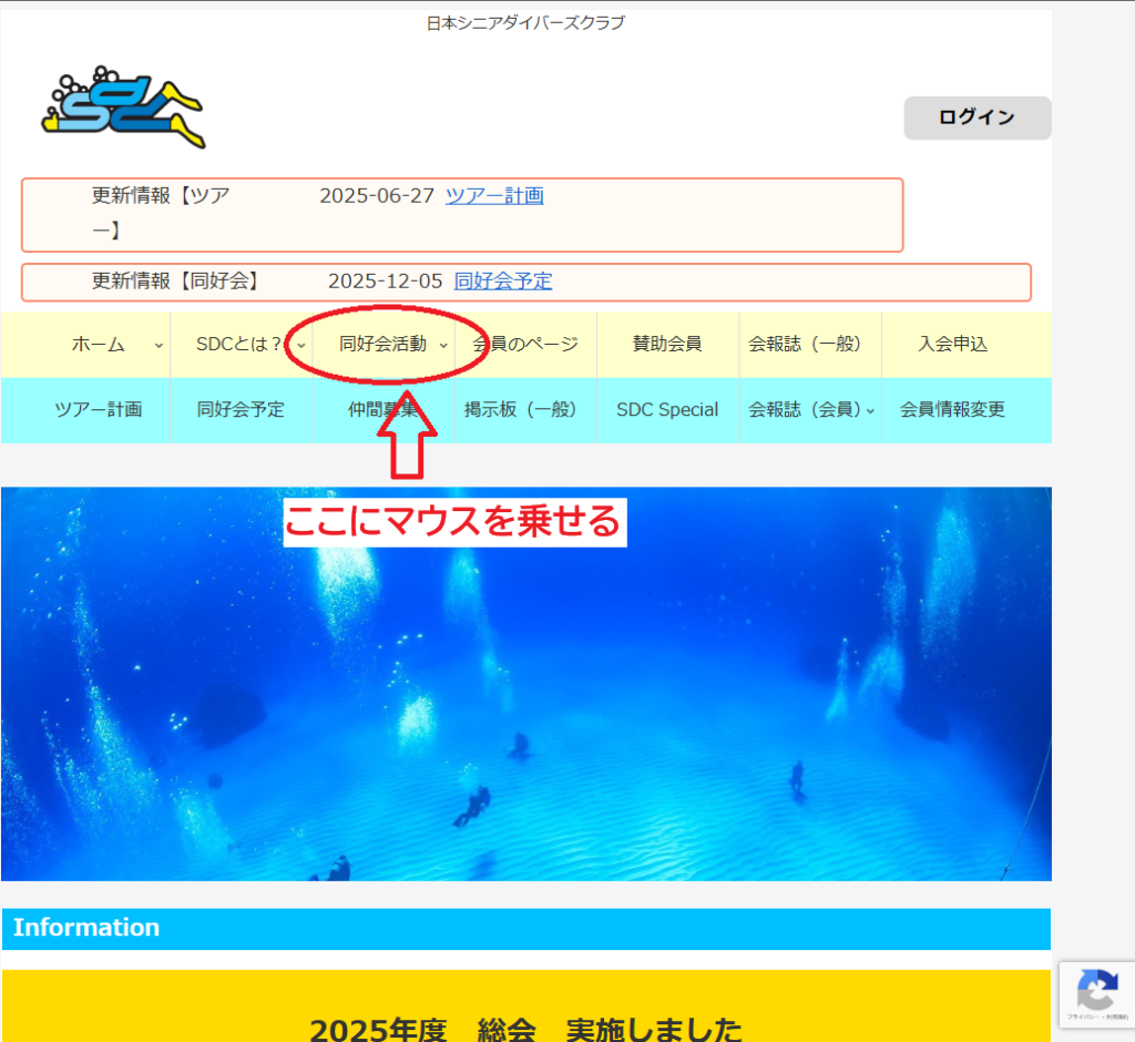 ※クリックすると同好会活動のページに飛んでしまいますのでマウスカーソルを乗せるだけです。